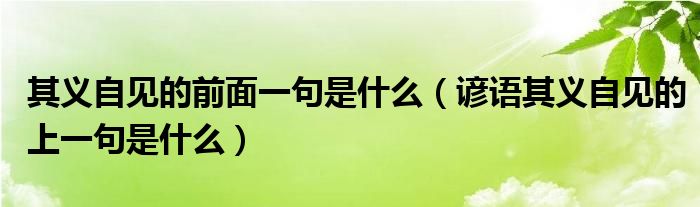 大家好,小生來為大家講解下。其義自見的前面一句是什么,諺語其義自見的上一句是什么很多人還不知道,現(xiàn)在讓我們一起來看看吧!