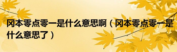 大家好,小生來為大家講解下。岡本零點(diǎn)零一是什么意思啊,岡本零點(diǎn)零一是什么意思了很多人還不知道,現(xiàn)在讓我們一起來看看吧!