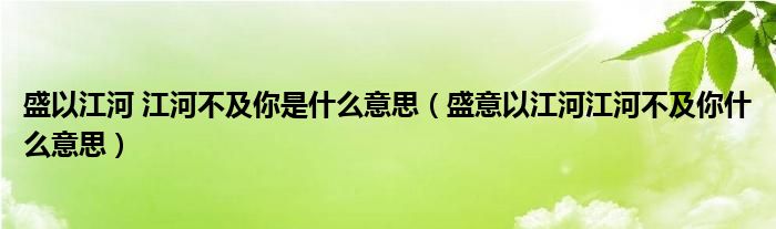 大家好,小生來為大家講解下。盛以江河 江河不及你是什么意思,盛意以江河江河不及你什么意思很多人還不知道,現(xiàn)在讓我們一起來看看吧!