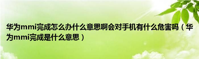 大家好,小生來為大家講解下。華為mmi完成怎么辦什么意思啊會(huì)對(duì)手機(jī)有什么危害嗎,華為mmi完成是什么意思很多人還不知道,現(xiàn)在讓我們一起來看看吧!