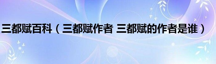 大家好,小生來(lái)為大家講解下。三都賦百科,三都賦作者 三都賦的作者是誰(shuí)很多人還不知道,現(xiàn)在讓我們一起來(lái)看看吧!