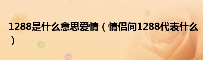 大家好,小生來為大家講解下。1288是什么意思愛情,情侶間1288代表什么很多人還不知道,現(xiàn)在讓我們一起來看看吧!