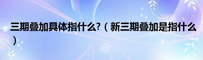 大家好,小生來(lái)為大家講解下。三期疊加具體指什么?,新三期疊加是指什么很多人還不知道,現(xiàn)在讓我們一起來(lái)看看吧!