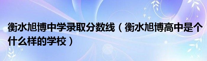 大家好,小生來為大家講解下。衡水旭博中學(xué)錄取分數(shù)線,衡水旭博高中是個什么樣的學(xué)校很多人還不知道,現(xiàn)在讓我們一起來看看吧!