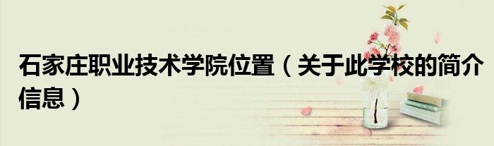 2、石家莊職業(yè)技術(shù)學(xué)院位于河北省石家莊市,創(chuàng)建于1984年。是河北省人民政府舉辦的公辦全日制普通高校。入選全國建筑業(yè)技能人才培養(yǎng)工程、第二批全國現(xiàn)代學(xué)徒制試點(diǎn)單位、河北省示范性高職院校。