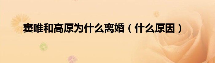 大家好,伊人來為大家解答以上問題。竇唯和高原為什么離婚,什么原因很多人還不知道,現(xiàn)在讓我們一起來看看吧!