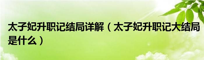 大家好,伊人來為大家解答以上問題。太子妃升職記結(jié)局詳解,太子妃升職記大結(jié)局是什么很多人還不知道,現(xiàn)在讓我們一起來看看吧!