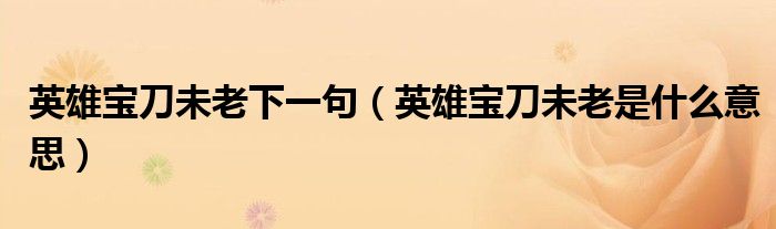 大家好,伊人來(lái)為大家解答以上問(wèn)題。英雄寶刀未老下一句,英雄寶刀未老是什么意思很多人還不知道,現(xiàn)在讓我們一起來(lái)看看吧!