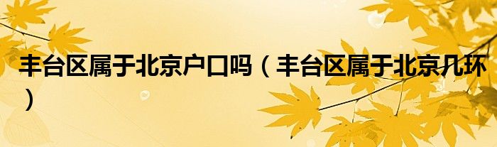 大家好,小生來(lái)為大家講解下。豐臺(tái)區(qū)屬于北京戶(hù)口嗎,豐臺(tái)區(qū)屬于北京幾環(huán)很多人還不知道,現(xiàn)在讓我們一起來(lái)看看吧!