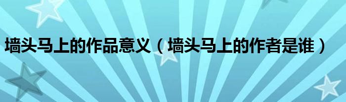 大家好,小生來(lái)為大家講解下。墻頭馬上的作品意義,墻頭馬上的作者是誰(shuí)很多人還不知道,現(xiàn)在讓我們一起來(lái)看看吧!