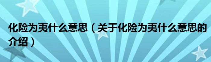 大家好,小新來為大家解答以上的問題?;U為夷什么意思,關于化險為夷什么意思的介紹很多人還不知道,現(xiàn)在讓我們一起來看看吧!