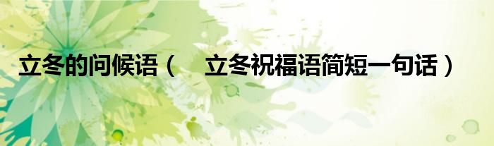 大家好,伊人來為大家解答以上問題。立冬的問候語, 立冬祝福語簡短一句話很多人還不知道,現(xiàn)在讓我們一起來看看吧!