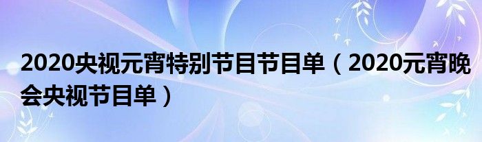 大家好,伊人來為大家解答以上問題。2020央視元宵特別節(jié)目節(jié)目單,2020元宵晚會央視節(jié)目單很多人還不知道,現(xiàn)在讓我們一起來看看吧!