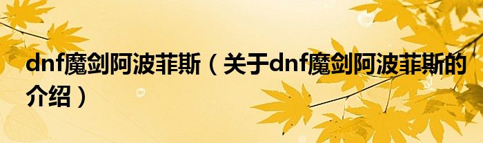 大家好,小新來為大家解答以上的問題。dnf魔劍阿波菲斯,關(guān)于dnf魔劍阿波菲斯的介紹很多人還不知道,現(xiàn)在讓我們一起來看看吧!