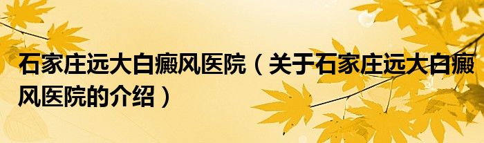 1、河北石家莊遠(yuǎn)大白癜風(fēng)醫(yī)院是一家專業(yè)治療白癜風(fēng)的醫(yī)院,不僅僅有著豐富經(jīng)驗(yàn)的醫(yī)生團(tuán)隊(duì)和完善的醫(yī)院制度和良好的服務(wù)態(tài)度,并且有著先進(jìn)的治療設(shè)備。