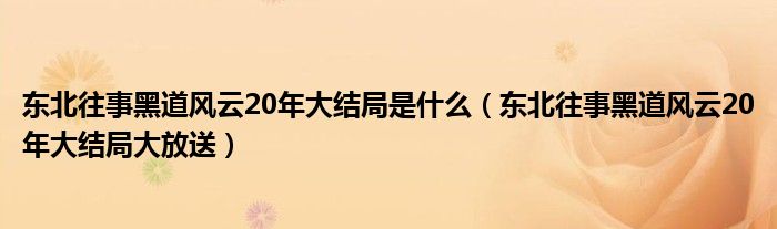 大家好,伊人來為大家解答以上問題。東北往事黑道風云20年大結(jié)局是什么,東北往事黑道風云20年大結(jié)局大放送很多人還不知道,現(xiàn)在讓我們一起來看看吧!