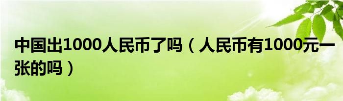 大家好,伊人來為大家解答以上問題。中國出1000人民幣了嗎,人民幣有1000元一張的嗎很多人還不知道,現(xiàn)在讓我們一起來看看吧!