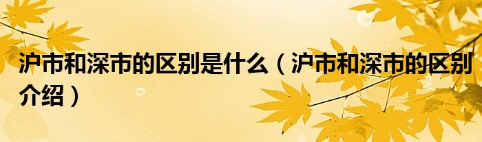 大家好,伊人來為大家解答以上問題。滬市和深市的區(qū)別是什么,滬市和深市的區(qū)別介紹很多人還不知道,現(xiàn)在讓我們一起來看看吧!