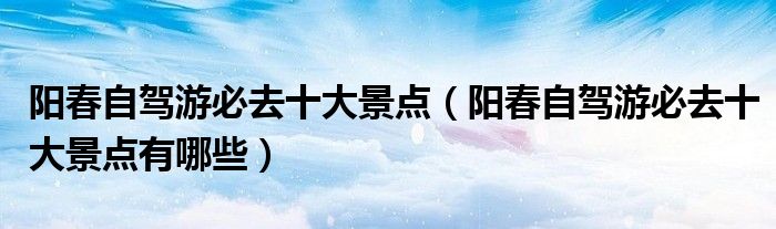 大家好,伊人來為大家解答以上問題。陽春自駕游必去十大景點(diǎn),陽春自駕游必去十大景點(diǎn)有哪些很多人還不知道,現(xiàn)在讓我們一起來看看吧!