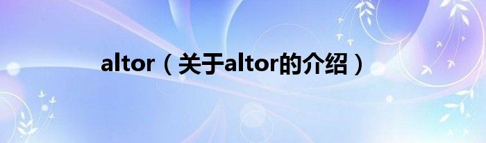 大家好,小新來為大家解答以上的問題。altor,關(guān)于altor的介紹很多人還不知道,現(xiàn)在讓我們一起來看看吧!