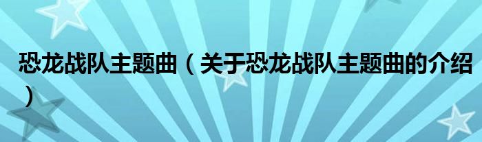 大家好,小新來為大家解答以上的問題??铸垜?zhàn)隊主題曲,關(guān)于恐龍戰(zhàn)隊主題曲的介紹很多人還不知道,現(xiàn)在讓我們一起來看看吧!