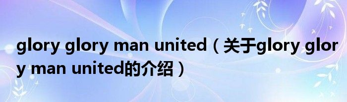 大家好,小新來為大家解答以上的問題。glory glory man united,關(guān)于glory glory man united的介紹很多人還不知道,現(xiàn)在讓我們一起來看看吧!