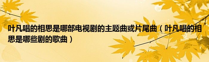大家好,伊人來為大家解答以上問題。葉凡唱的相思是哪部電視劇的主題曲或片尾曲,葉凡唱的相思是哪些劇的歌曲很多人還不知道,現在讓我們一起來看看吧!