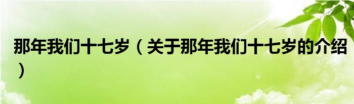 大家好,小新來為大家解答以上的問題。那年我們十七歲,關(guān)于那年我們十七歲的介紹很多人還不知道,現(xiàn)在讓我們一起來看看吧!