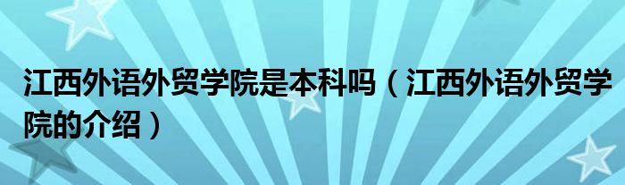 1、江西外語(yǔ)外貿(mào)學(xué)院是一所??茖W(xué)校。