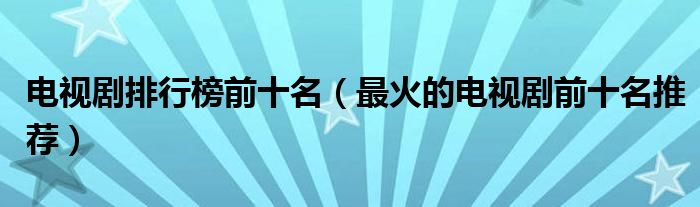 大家好,伊人來為大家解答以上問題。電視劇排行榜前十名,最火的電視劇前十名推薦很多人還不知道,現在讓我們一起來看看吧!