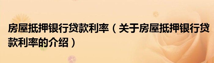 大家好,小新來為大家解答以上的問題。房屋抵押銀行貸款利率,關(guān)于房屋抵押銀行貸款利率的介紹很多人還不知道,現(xiàn)在讓我們一起來看看吧!