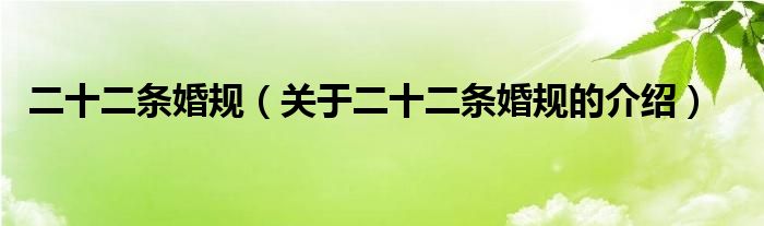 大家好,小新來為大家解答以上的問題。二十二條婚規(guī),關(guān)于二十二條婚規(guī)的介紹很多人還不知道,現(xiàn)在讓我們一起來看看吧!