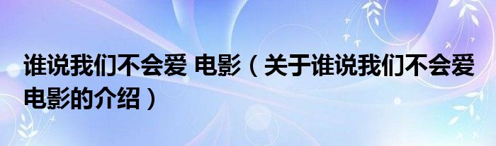 大家好,小新來為大家解答以上的問題。誰說我們不會(huì)愛 電影,關(guān)于誰說我們不會(huì)愛 電影的介紹很多人還不知道,現(xiàn)在讓我們一起來看看吧!