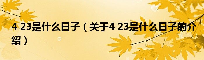 大家好,小新來為大家解答以上的問題。4 23是什么日子,關(guān)于4 23是什么日子的介紹很多人還不知道,現(xiàn)在讓我們一起來看看吧!