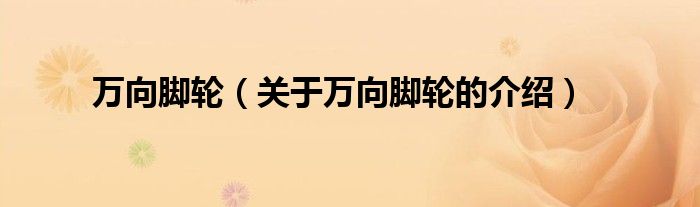 大家好,小新來為大家解答以上的問題。萬向腳輪,關于萬向腳輪的介紹很多人還不知道,現(xiàn)在讓我們一起來看看吧!