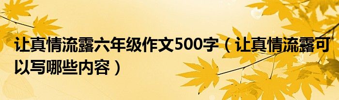 大家好,伊人來為大家解答以上問題。讓真情流露六年級(jí)作文500字,讓真情流露可以寫哪些內(nèi)容很多人還不知道,現(xiàn)在讓我們一起來看看吧!