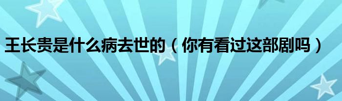 大家好,伊人來為大家解答以上問題。王長貴是什么病去世的,你有看過這部劇嗎很多人還不知道,現(xiàn)在讓我們一起來看看吧!