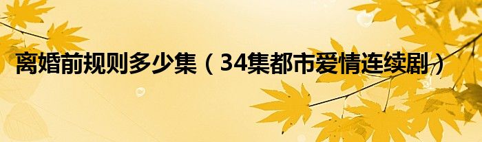 大家好,伊人來為大家解答以上問題。離婚前規(guī)則多少集,34集都市愛情連續(xù)劇很多人還不知道,現(xiàn)在讓我們一起來看看吧!