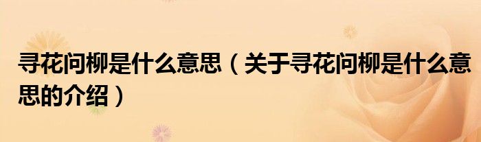 大家好,小新來為大家解答以上的問題。尋花問柳是什么意思,關于尋花問柳是什么意思的介紹很多人還不知道,現在讓我們一起來看看吧!