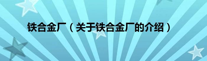 大家好,小新來(lái)為大家解答以上的問(wèn)題。鐵合金廠,關(guān)于鐵合金廠的介紹很多人還不知道,現(xiàn)在讓我們一起來(lái)看看吧!
