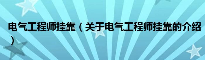 大家好,小新來為大家解答以上的問題。電氣工程師掛靠,關(guān)于電氣工程師掛靠的介紹很多人還不知道,現(xiàn)在讓我們一起來看看吧!