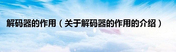 大家好,小新來為大家解答以上的問題。解碼器的作用,關(guān)于解碼器的作用的介紹很多人還不知道,現(xiàn)在讓我們一起來看看吧!
