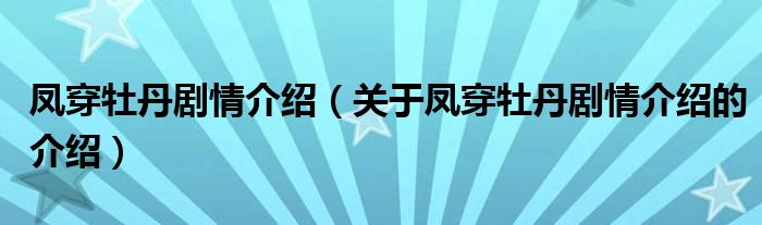 大家好,小新來為大家解答以上的問題。鳳穿牡丹劇情介紹,關(guān)于鳳穿牡丹劇情介紹的介紹很多人還不知道,現(xiàn)在讓我們一起來看看吧!