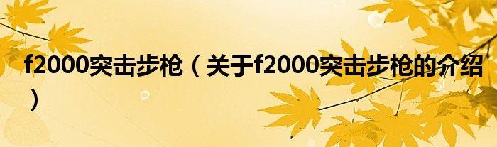 大家好,小新來為大家解答以上的問題。f2000突擊步槍,關于f2000突擊步槍的介紹很多人還不知道,現(xiàn)在讓我們一起來看看吧!