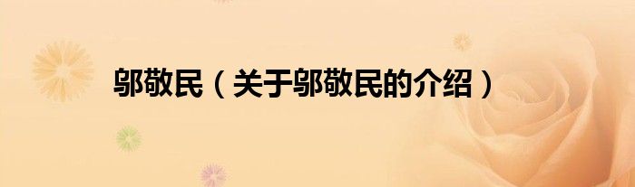 大家好,小新來為大家解答以上的問題。鄔敬民,關于鄔敬民的介紹很多人還不知道,現(xiàn)在讓我們一起來看看吧!