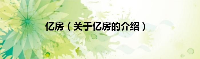大家好,小新來為大家解答以上的問題。億房,關于億房的介紹很多人還不知道,現在讓我們一起來看看吧!