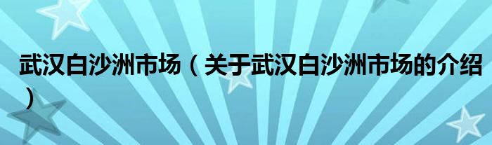 大家好,小新來(lái)為大家解答以上的問(wèn)題。武漢白沙洲市場(chǎng),關(guān)于武漢白沙洲市場(chǎng)的介紹很多人還不知道,現(xiàn)在讓我們一起來(lái)看看吧!