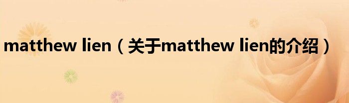大家好,小新來為大家解答以上的問題。matthew lien,關(guān)于matthew lien的介紹很多人還不知道,現(xiàn)在讓我們一起來看看吧!