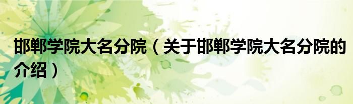 大家好,小新來為大家解答以上的問題。邯鄲學(xué)院大名分院,關(guān)于邯鄲學(xué)院大名分院的介紹很多人還不知道,現(xiàn)在讓我們一起來看看吧!