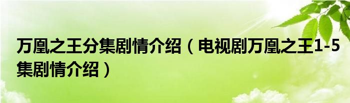 大家好,伊人來(lái)為大家解答以上問(wèn)題。萬(wàn)凰之王分集劇情介紹,電視劇萬(wàn)凰之王1-5集劇情介紹很多人還不知道,現(xiàn)在讓我們一起來(lái)看看吧!